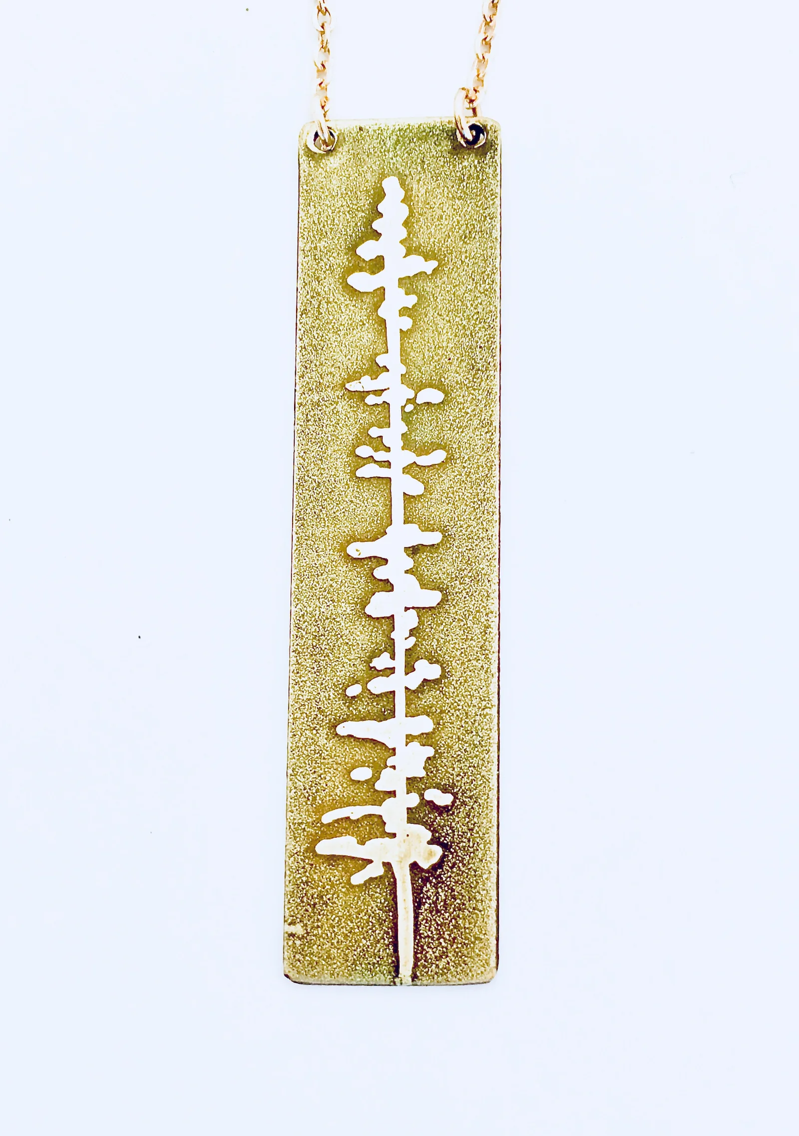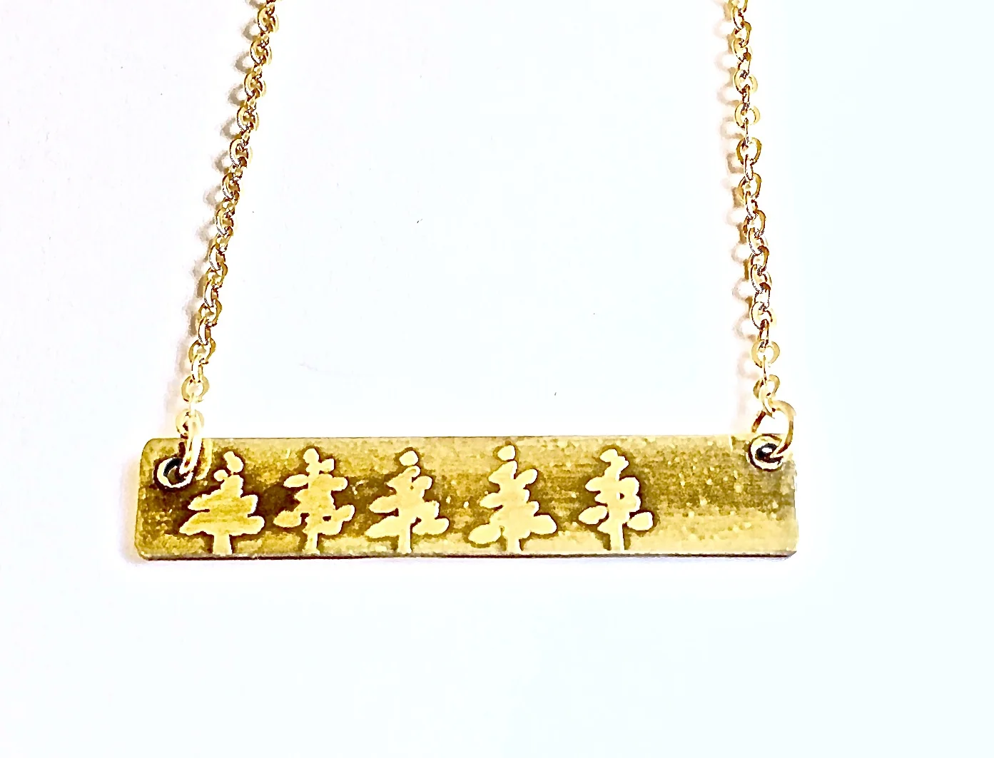 Four Trees Etched on Reverse Side of Bar Necklace