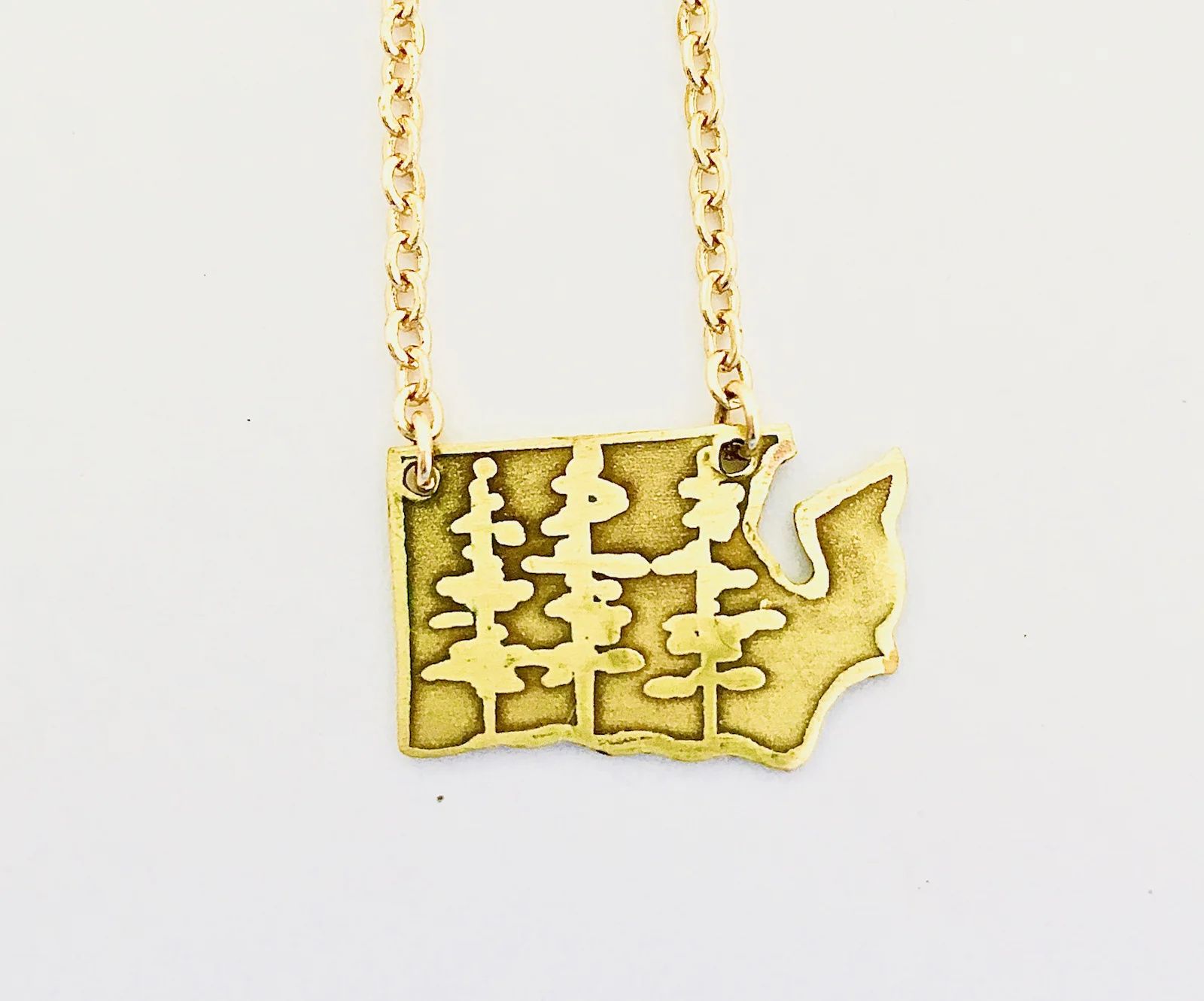 Three Fir Trees on the reverse side of washington state cutout neclace